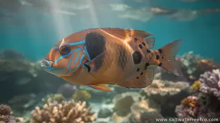The Blue Eye Bristletooth is a striking tang-like reef fish recognizable by its orange-brown bodyvibrant blue markings, and distinctive spotted pattern around the face and fins. As a result, it’s often described as one of the more visually dramatic tangs seen in marine displays.