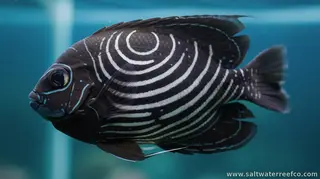Juvenile Koran angelfish (*Pomacanthus semicirculatus*) are capturing the eye of reef hobbyists with a striking look: deep black coloration paired with clean white patterning. The high-contrast design is most noticeable in younger fish and is often the first visual clue that distinguishes juveniles from adults.